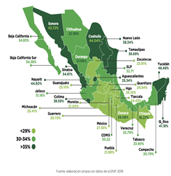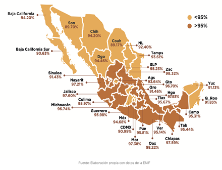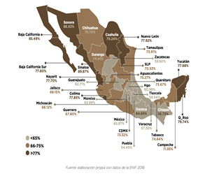 La ENIF nos da una visión general de lo que sucede con el uso de efectivo. El uso de efectivo en México es generalizado en el país y en los distintos tamaños de localidad. Además, la brecha entre Entidades Federativas es pequeña.